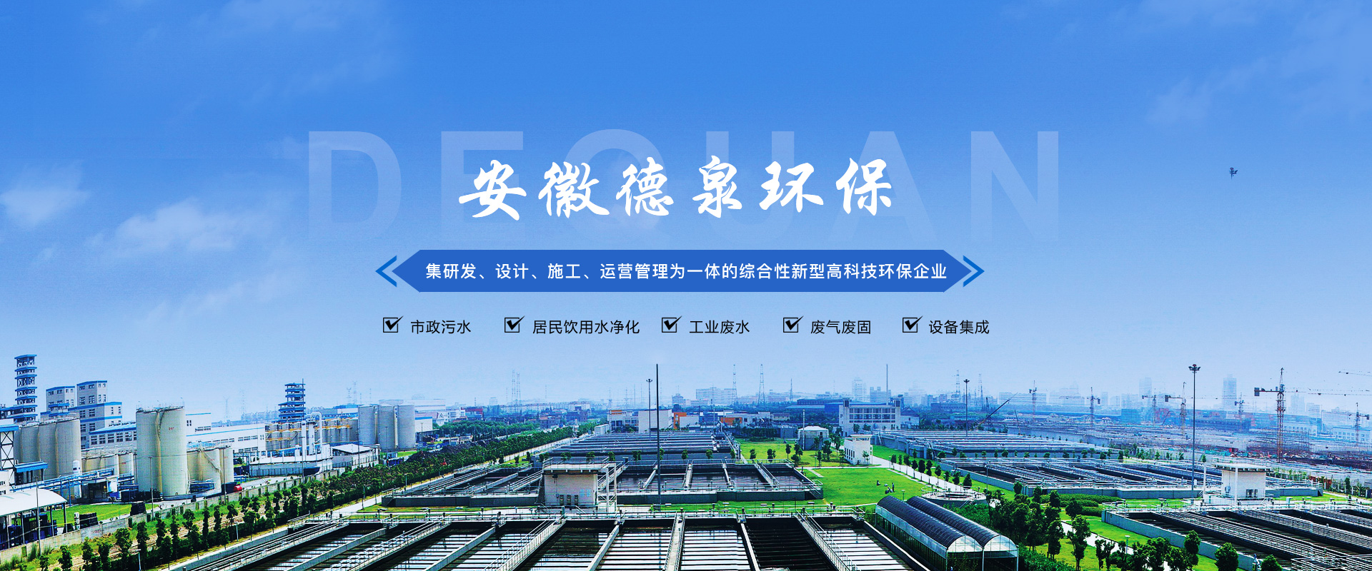 安徽德泉環(huán)??萍加邢薰局铝τ趶U水、廢氣、固廢技術(shù)處理研發(fā)、設(shè)計(jì)、施工及運(yùn)營管理,從事環(huán)保設(shè)備及設(shè)施的制造和銷售,為環(huán)保項(xiàng)目系統(tǒng)提供專業(yè)的技術(shù)咨詢和服務(wù)。是一家集建筑勞務(wù)分包,工程總承包(EPC)、項(xiàng)目投資(BOT/PPP)、運(yùn)營管理(O&M)于一體的綜合性新型高科技企業(yè)。